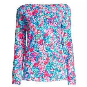 Lilly Pulitzer Aleah long-sleeve top Surf Blue Flim Flam print