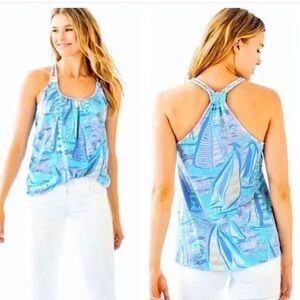 Lilly Pulitzer Aleida Tank Tunic Top Light blue Verbena Aboat Time sailboats