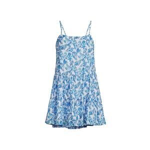 Swing fit, tiered dress with adjustable spaghetti straps and side seam pockets.