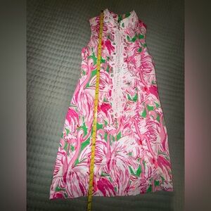 Lilly Pulitzer Alexa Shift Dress Flamingo Pink Green White Lace Size 0