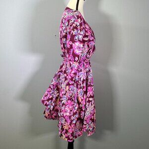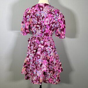 Lilly Pulitzer Alexandria Elbow Sleeve C - Women's Dress : Amarena Cherry Tropical with A Twist : Let your personality shine in a new color by wearing Lilly Pulitzer Alexandria Elbow Sleeve C dress. The flare wrap skirt makes this dress unique. It is designed with a surplice neckline, waist tie, and elbow-length sleeves with pleated details. A tiered ruffle at the skirt lets you move freely outdoors. It is printed stylistically with oversized leafy design. ; 100% cotton. ; Machine wash. ; Imported.