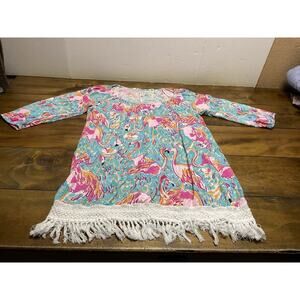 Lilly Pulitzer Alia Flamingo Size Medium Fringe Shift Dress Cover Up