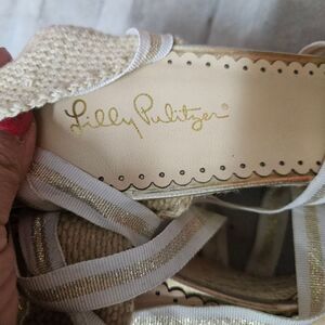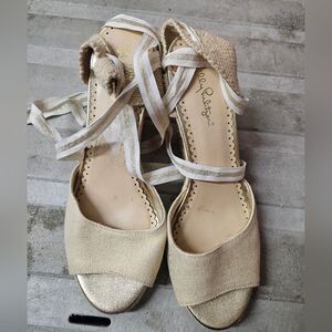 Lilly Pulitzer Alyssa Wedge Metallic Sandal in Cream / Gold 9.5