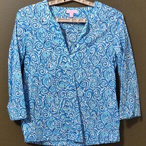 Lilly Pulitzer Amelia Tunic Chasing Tail Blue Fish Swirls SIZE SMALL