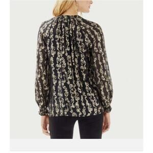 Lilly Pulitzer Angelika Black & Gold Top Size XS Geometric Pattern Ruffle Sleeve