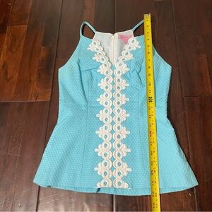 Lilly Pulitzer Annabelle Tank V Neck Women’s 00 Blue With White Lace Detail