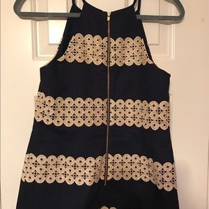 NWT Lilly pulitzer Annabelle shift. Bought for a wedding and didn't fit. Beautiful gold and white lace detail. Flattering neck and shoulders