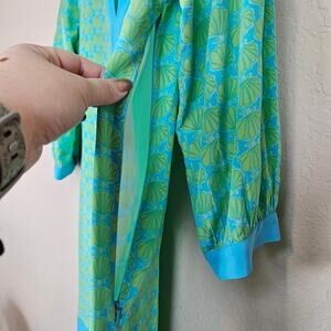 100% silk Lilly Pulitzer 2009 dress in blue and green seashell pattern.