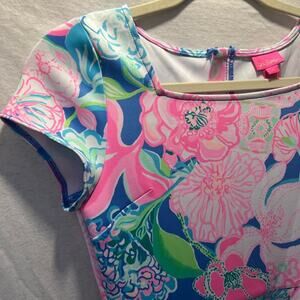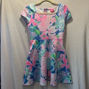 Lilly Pulitzer Arya Neon Colorful Skater Short Sleeve Square Neck Dress