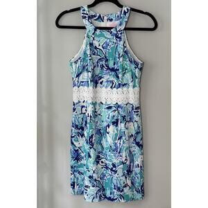 Lilly Pulitzer Ashlyn Shift Dress 00 Turquoise Blue Elephant Appeal Tropical