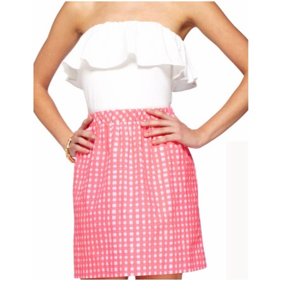 • Style: Strapless, Gingham Print