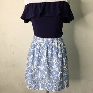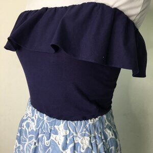 Lilly Pulitzer Athens Strapless A-Line Dress Blue XS Hollar for a Dollar Eyelet