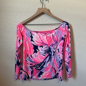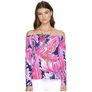 Lilly Pulitzer Audelia Off The Shoulder Top True Blue Paradise Point Size S