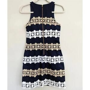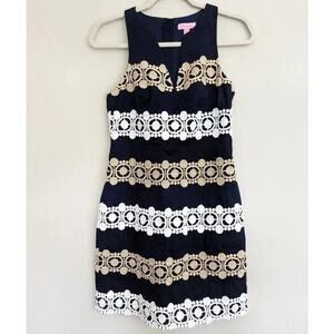 🌸 Lilly Pulitzer Augusta Shift Dress Navy Blue White Gold Lace Trim – Size 0 XS