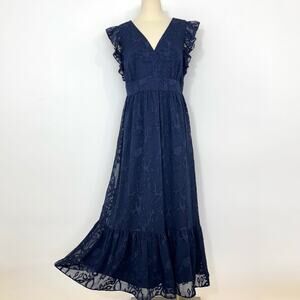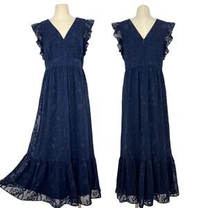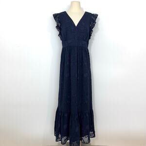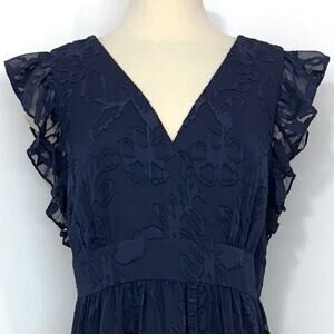 Lilly Pulitzer Autumn Midi Dress True Navy Botanical Clip Shadow Chiffon 12 NWT