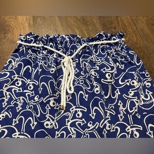 Lilly Pulitzer Avery Blue White Anchor Print Rope Tie Skirt Size Small Nautical