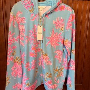 Lilly Pulitzer Avida Terry Hoodie Size Large Royal Coral NWT