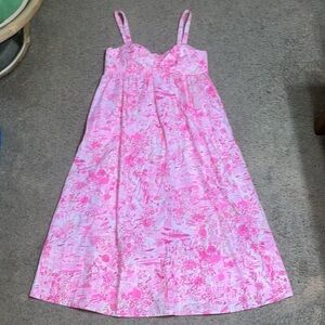 Lilly Pulitzer Azora Cotton Midi Dress Peony Pink Seaside Scene 14. Breeze through summer in the perfect midi sundress, made from lightweight cotton poplin in a spirited print. The Azora Dress is a fit-and-flare style with wide adjustable straps, a twist-front bodice, side seam pockets, and a smocked back panel for a comfy fit. Fit-and-flare, midi dress with wide, adjustable straps, twist-front bodice with cups, side seam pockets, and smocked back panel. Fits against body at chest and waist and is full at bottom hem. Lightweight Cotton Poplin (100% Cotton). Approx measurements: 18“ pit to pit & 52“ length. New condition. No stains/flaws. Smoke/pet free home. Offers welcome. Bundle & save. Ship same/next day. Packaged w/ care.