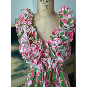 This is a beautiful Lilly Pulitzer dress, perfect for any occasion! The empire waist creates a flattering silhouette, and the backless design adds a touch of elegance. It's in great condition and ready for a new home. Don't miss out on this amazing deal!