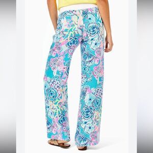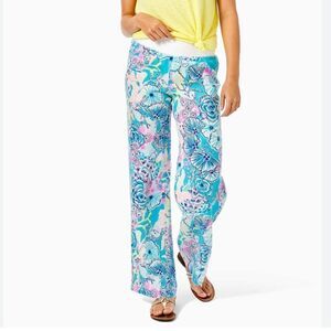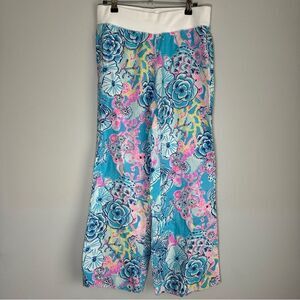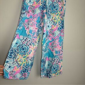 Lilly Pulitzer Bali Blue Once Upon A Tide Linen Palazzo Pants Size S Mid Rise