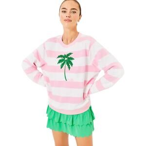 Lilly Pulitzer Ballad Pink and White Striped Sequin Palm Tree Crew Sweatshirt