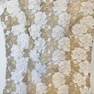 Lilly Pulitzer Barbara Gold Metallic Two Tone Truly Petal Lace Shift Dress. Great condition. Shell: 100% cotton. Lining: 100% cotton. Size 4. D38.