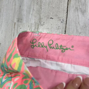Keywords: Lilly Pulitzer, Chino shorts, size 6, blue shorts, summer wear, casual shorts, cotton shorts, women's fashion, pre-owned shorts, signature logo, button closures, back pockets, machine washable, summer casual, Make a Splash pattern