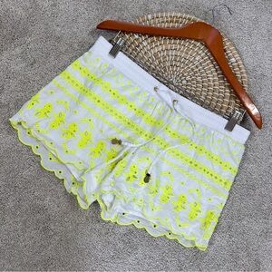 Lilly Pulitzer Baybreeze Resort Shorts 3.5” White Yellow Pineapple Eyelet Size M
