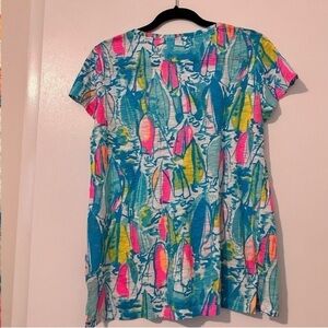 Lilly Pulitzer Beach and Bae Sailboat V Neck Tee Small Short Sleeve Womens