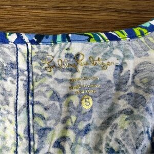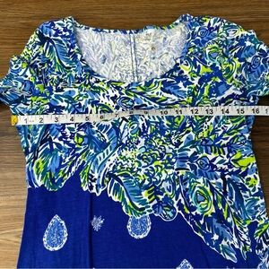 Lilly Pulitzer Beacon Dress Twilight Blue Show Down Green 3/4 Sleeve Small Mini