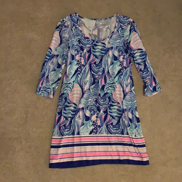Excellent preowned condition. No flaws. Print is Twilight Blue Scale Up Engineered Dress. Matching daughter in my closet.