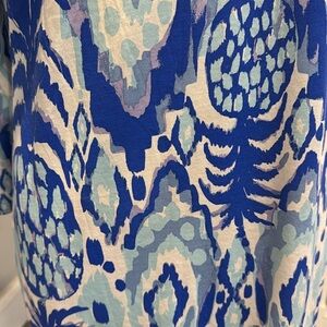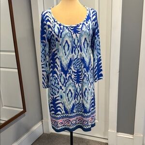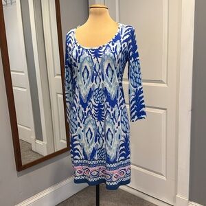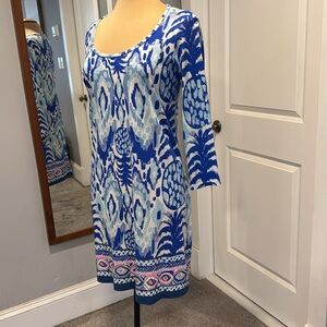 Lilly Pulitzer Beacon Tropical Blue White Pink 3/4 sleeve Sheath Dress Medium