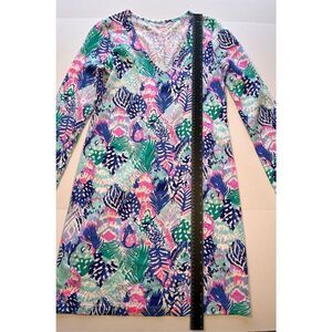Lilly Pulitzer Beacon Dress Long Sleeve Quill Out V Neck Wm Size Small