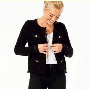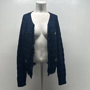 Lilly Pulitzer Beckington Cardigan Tweed Open Front Knit Sparkle Dark Navy Blue M Medium
