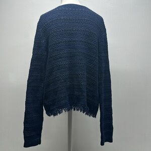 Inspired Chanel's tweed luxury collection -The part blazer, part cardigan features a textured knit fabrication with subtle metallic details and fringe trim.