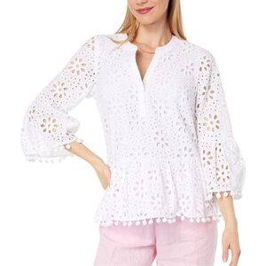 Lilly Pulitzer Bekah Eyelet Top Lace Blouse Size XS White Quarter Sleeve NWT
