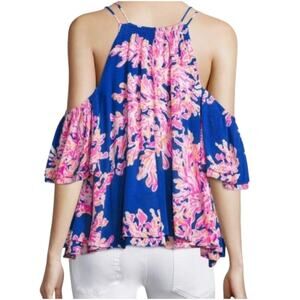 Lilly Pulitzer Bellamie Cold Shoulder Top XL Its Eelectric Print