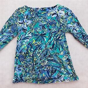 Lilly Pulitzer Bennet Blue Sneak a Beak Long Sleeve Cotton Top Small