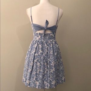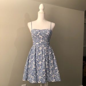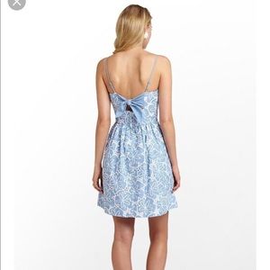 This adjustable spaghetti-strapped, tide blue sand dollar eyelet patterned Bethany Lilly Pulitzer dress with both a zipper and tie in the back is no longer available online. It it fitted in the top, and thick enough that no bra is required. It is super flattering, and perfect for any spring/summer occasion. It has been worn once, and is in perfect condition (besides the initials in the tag).