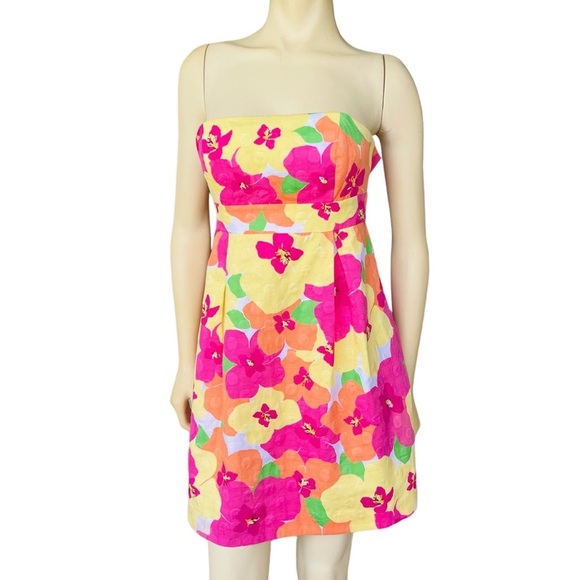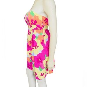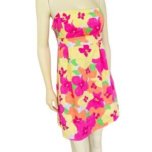 Lilly Pulitzer Betsy Floral Punch Woven Dots Strapless Dress Size 0
