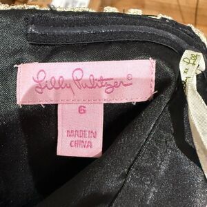Lilly Pulitzer Black & Gold 100% Silk Chiffon Pleated Dress "Jillie" - Size 6 -