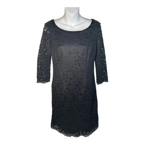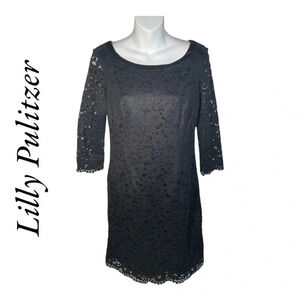 Lilly Pulitzer Black Lace Sheath Dress Size 2 Knee Length 3/4 Sleeve