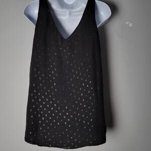 Elegant and versatile Lilly Pulitzer cami top in women’s size Small. Crafted from a luxurious blend of 91% silk and 9% metallic fibers, this black sleeveless blouse has a subtle shimmer with a jacquard dot pattern that catches the light beautifully.