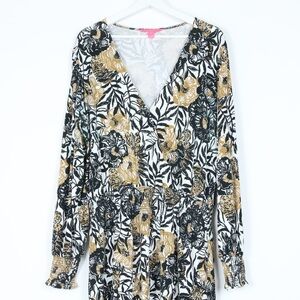 Lilly Pulitzer Black and Gold Floral Long Sleeve Dress