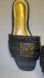 Chic black sandals with gold accents. Stylish slide design. Perfect for casual outings.