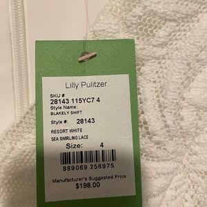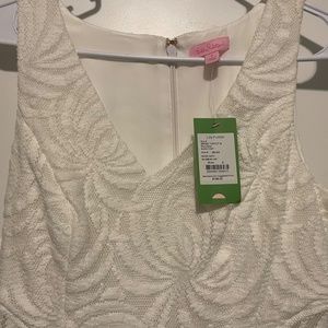 Beautiful and never worn Lilly Pulitzer Ivory Lace Blakeley Shift Mini Dress. Intricate swirling lace detail throughout, lace cutout detail on sides and in back. Size 4, new without tags.