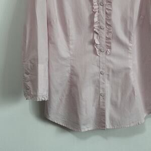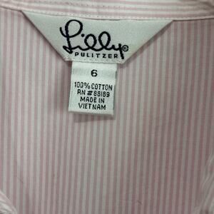 Lilly Pulitzer Blouse 6 Pink Pinstripe Ruffle Front 3/4 Sleeve Spring Summer Top