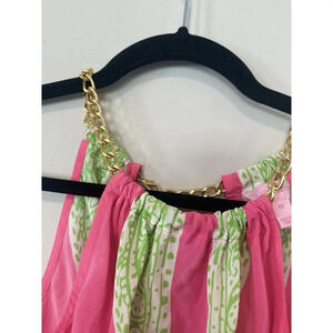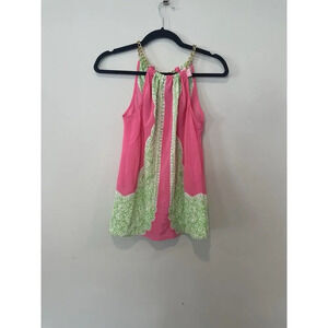 Lilly Pulitzer Blouse Pink Green Riviera Silk Chain Halter Neck Tank Top Size XS T1012