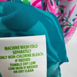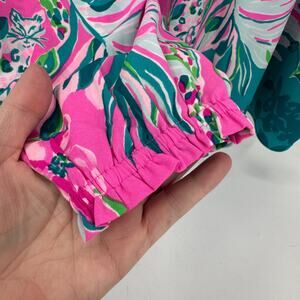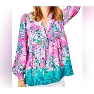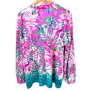 Lilly Pulitzer Blouse Womens Medium Winona Tunic V-Neck Peplum Waist Pink Blue