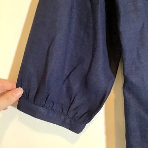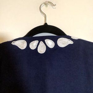 Lilly Pulitzer navy white embroidery design linen blouse size medium